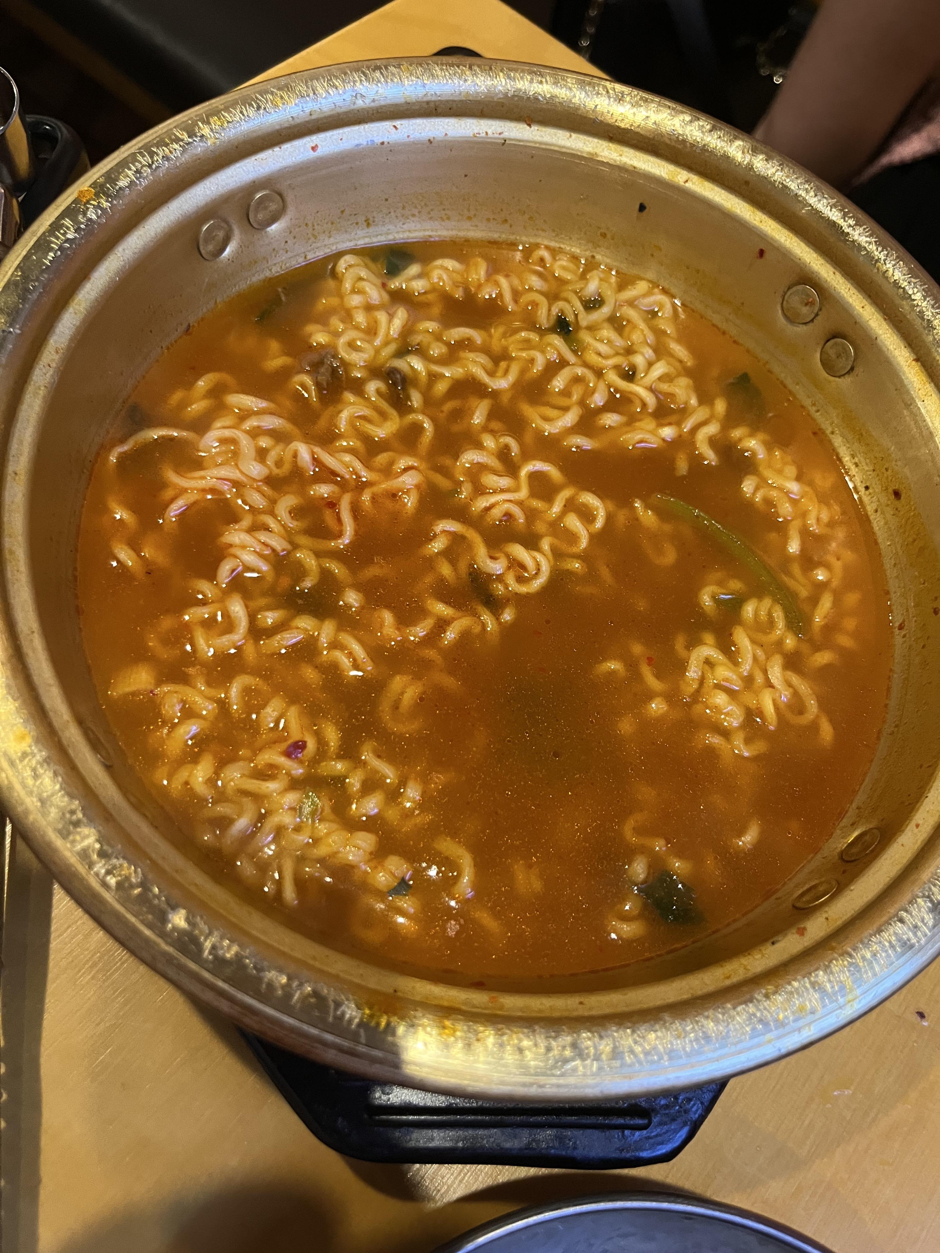 볶음밥과 같이 먹으려고 라면을 시켰습니다. 원래 전골을 시키려고 그랬는데 요즘 전쟁 때문에 전골 쪽에 있는 식품이 안 들어오는 것 같다고 사장님이 이야기해주셨습니다. 아쉽네요 전골도 맛있는데 예전에 먹어서 사진을 찍어놨는데 없어졌네요.