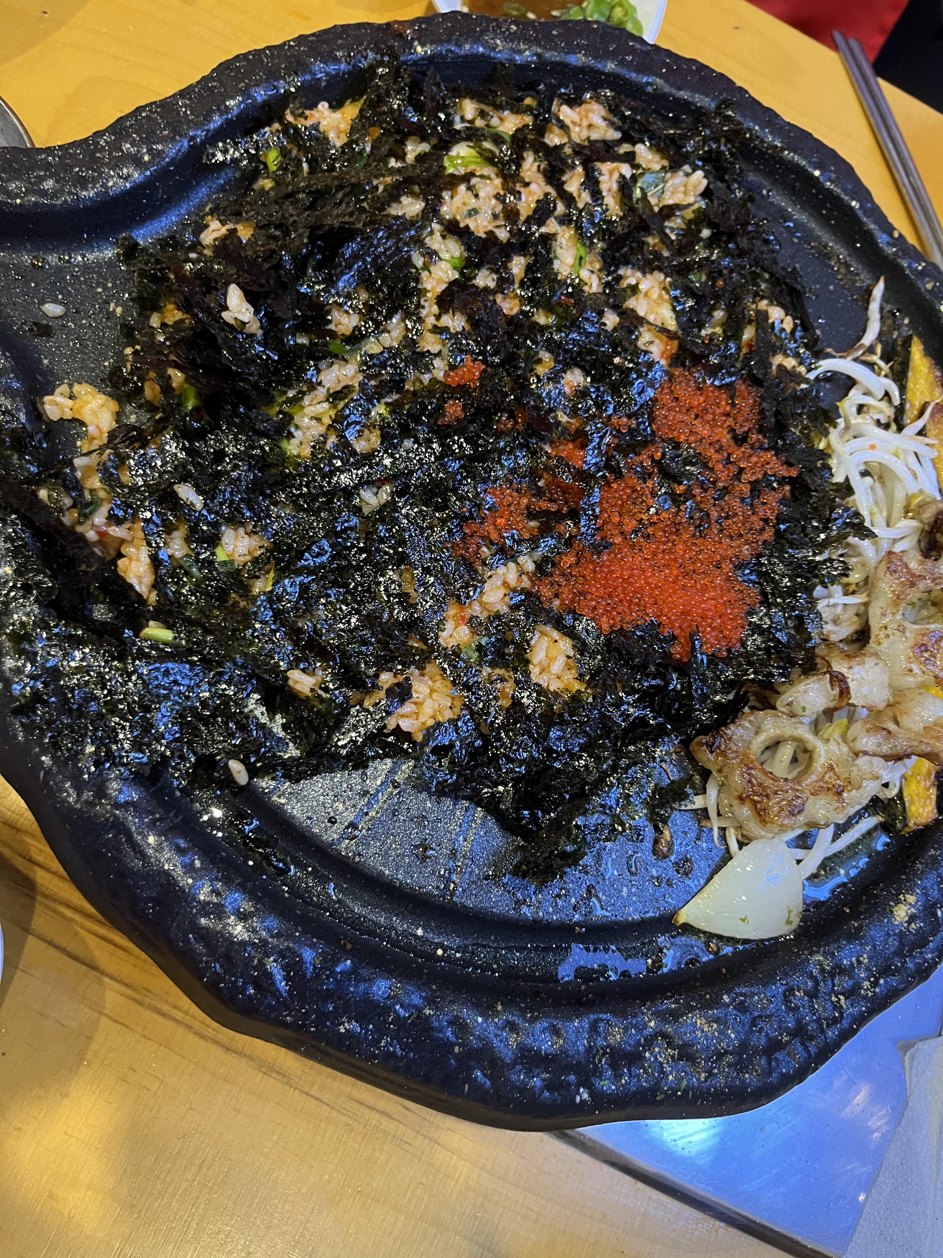 대망의 볶음밥! 한국인이라면 마지막에는 볶음밥이죠. 밥에 양념이 되어있는 채로 나와서 불판에 굽는데요. 나중에 바닥면이 바삭하게 누룽지가 될 정도로 익혀서 먹어도 맛있습니다. 짭짤하니 같이 대창과 먹어도 맛있네요.